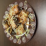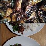 Но это было вкусно, красиво , не банально , жаль - не сообразила сфотографировать, потому что на подушке из риса жасмин, с зелёным луком, имбирём и кунжутом блюдо смотрелось очень круто !