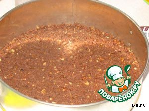 Выложить на дно формы с разъёмными сторонами и хорошенько утрамбовать дном стакана.