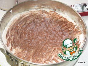Выложить творог на основу. Я сверху сделала ещё бороздки расплавленным шоколадом.