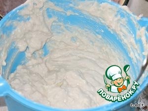 Белки взбить с сахаром (1/2 стакана) до устойчивых пиков и аккуратненько вмешать в творог. -