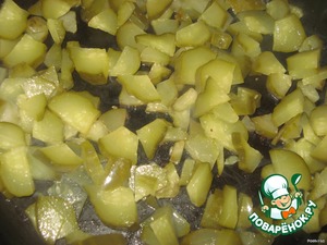 Огурцы нарезать небольшими кусочками, обжарить до мягкости.
