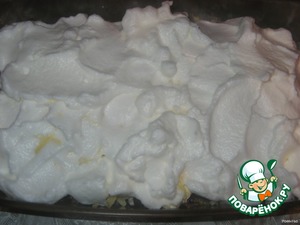 Белки взбить с щепоткой соли в устойчивую пену. Покрыть овощи.