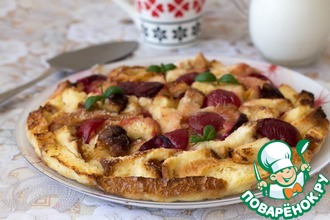 Готовый пудинг выложить на блюдо, залить соусом и подавать сразу же, горячим.