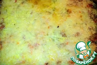 7. Спустя 30 минут посыпаем запеканку тёртым сыром и отправляем ещё на 30 минут до образования золотистой корочки.