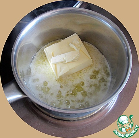 Сливочное масло укладываем в кастрюльку и ставим на малый огонь.