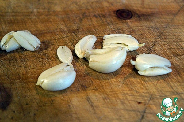 Посолить, поперчить. Поверх выложить раздавленный чеснок и листики розмарина.