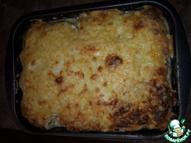 Все покрыть соусом бешамель. Отправить в разогретую до 200 градусов духовку на 20 минут.