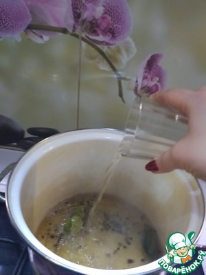 Вливаем 1л. воды, добавляем 2 ст. л. сахара, 4 ст. л. соли, 6 шт. лаврового листа, перец горошком и гвоздику.