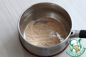 В сотейник добавить муку (2 ст. ложки). Обжарить муку на медленном огне до светло бежевого цвета без добавления масла.