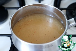 Затем постепенно, порциями, добавить воду. Воды, возможно, потребуется от 400 до 500 мл., все будут зависеть от вашего предпочтения. Если вы любите густые соусы, возможно хватит 400 мл. воды, если вы отдаете предпочтение более жидким соусам, вам потребуется 500 мл. Сотейник поставить на медленный огонь и проварить соус до нужной вам густоты.