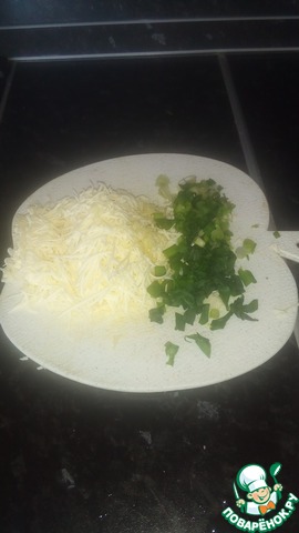 Оставляем тесто отдохнуть. Тем временем натираем сырок на мелкой тёрке, туда же натираем чеснок. Мелко нарезать лук.
