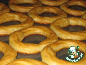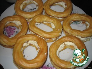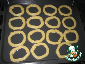 На смазанный маслом противеннь отсадить кольца диаметром примерно 8 см.