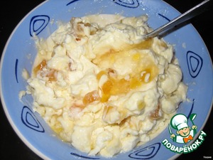 Яйца разбить в кружку, взбить. Очень медленно, постепенно ввести яйца в тесто. Тесто должно получиться гладким и блестящим.