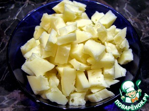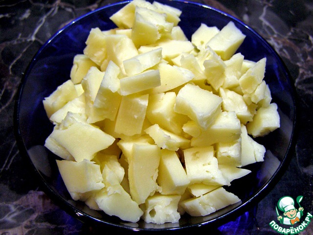 Для этого салата лучше всего подходит козий сыр, заменять его на другой нежелательно. Сыр нарезать небольшими кусочками, а лучше просто отщипывать их, как это сделала я - по-моему, так вкуснее :)