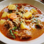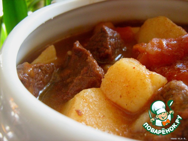Это блюдо достаточно простое, но имеет свою изюминку – сладкую паприку, которая придает насыщенный цвет и своеобразный вкус мясу.