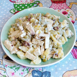 Мне нравятся 30-ти минутные блюда. Этот рецепт вполне вписывается. А поскольку все прекрасно знают как нарезать для " Оливье", фото каждого шага не прилагаются. Вам потребуется блендер для приготовления заправки. Почитайте раздер "Заправка" и убедитесь, что у вас есть подходящий.
