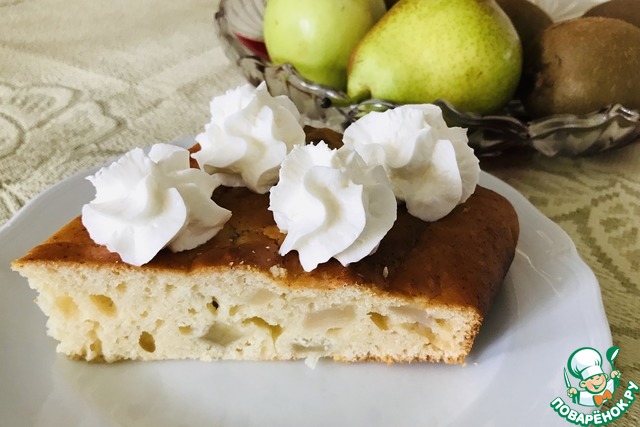 Этим рецептом я хочу поздравить с днем Рождения нашего поваренка Евгению 1976 Рецепт взят из кулинарной книги. Фрукты могут быть разные по вашему вкусу, я приготовила из того, что было в доме. Груша, яблоко, банан получилось ароматное сочетание!!! Тесто мягкое и влажное. Вес получился около 800 гр.