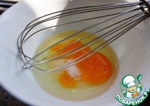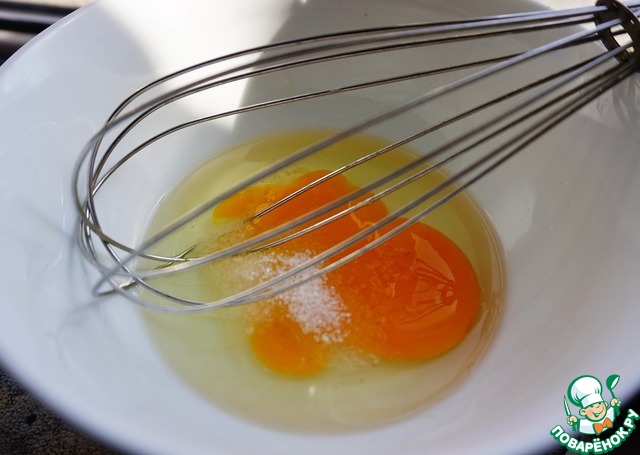 Готовим жидкие ингредиенты. К яйцу добавляем соль и сахар.