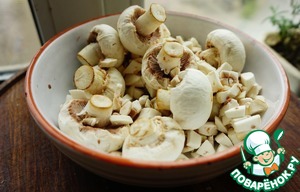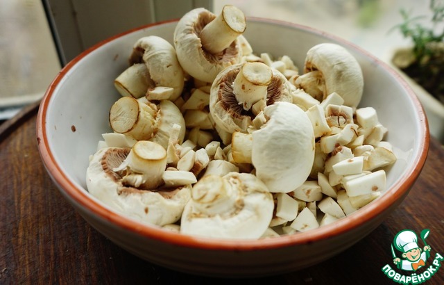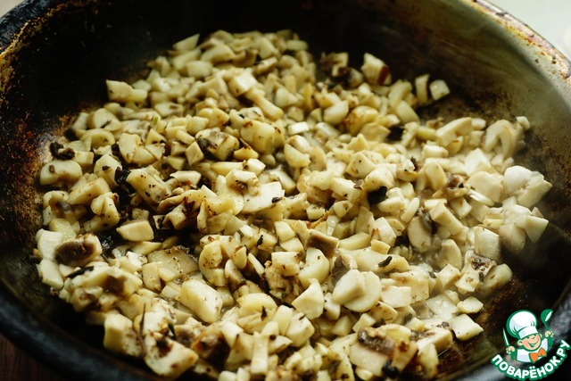 Нарезаем мелкими кубиками грибы.