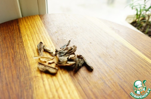 - Грибы (белые сухие) — 1 щепот.