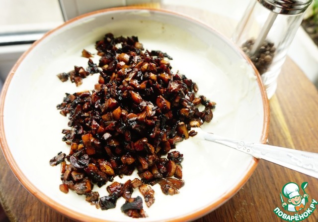 Приступаем к приготовлению заливки. Выкладываем сметану.