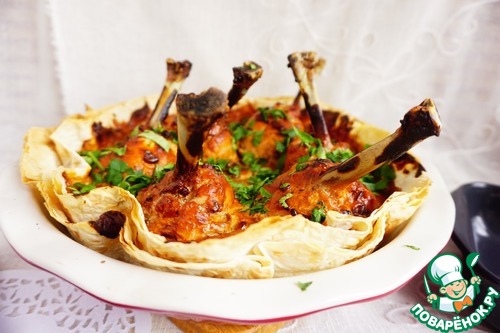 Куриные голени, запеченные в соусе и лаваше