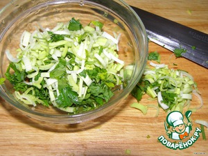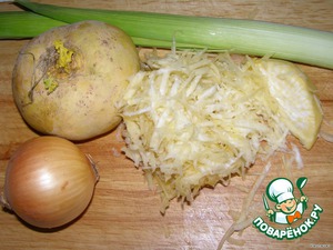 нарезать (натереть на терке) корень петрушки (у меня, увы, его не было).