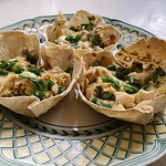 Корзиночки из тонкого лаваша с мясной начинкой.