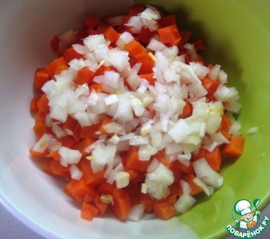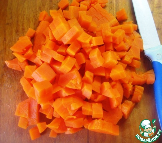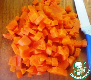 • Морковь отварить, нарезать небольшими кубиками.