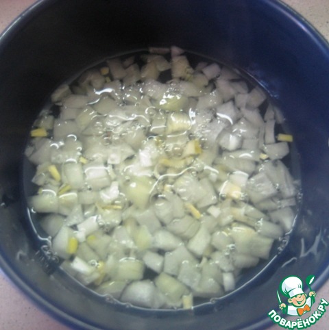 • Залить только что закипевшей водой, накрыть и дать постоять минут 30, затем воду слить и дать стечь лишней жидкости.