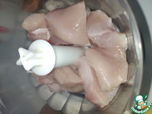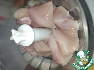 Филе куриное перемалываем в блендере или на мясорубку, чтобы получился фарш. Туда же добавляем луковицу.