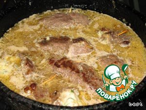 И влей в сковороду еще граммов 100 вина.
