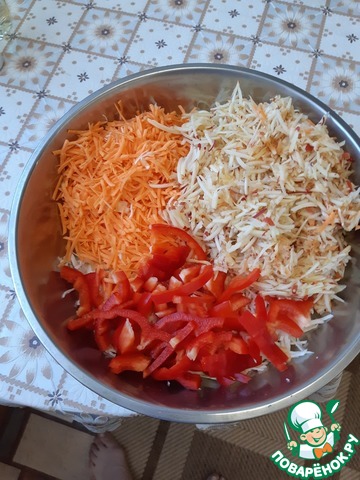 - Перец болгарский (По весу должно быть столько же, сколько и моркови) — 1 шт