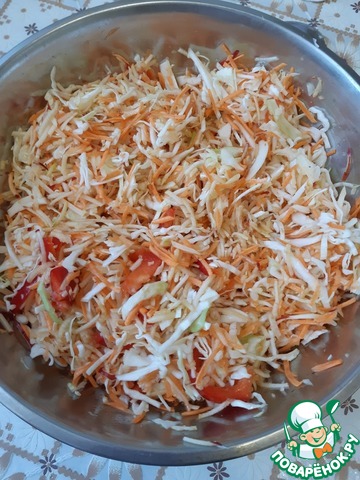 Все тщательно перемешиваем. "Пожамкаем" немного, без фанатизма