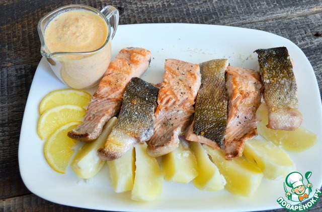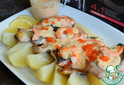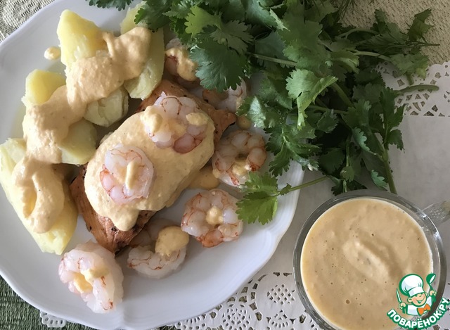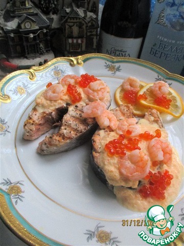 Рецепт «Кета-гриль с креветочно-сливочным соусом»: