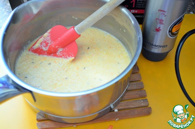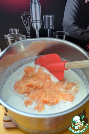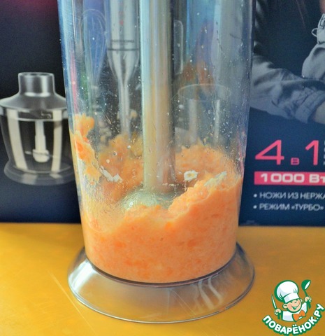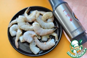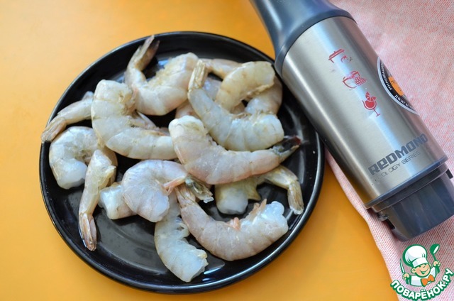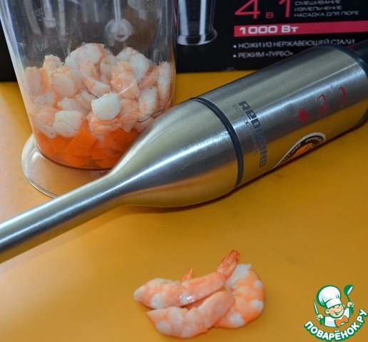 Креветки и морковь сварить, процедить и оставить 50 мл отвара от креветок.