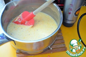 Вскипятить сливки с укропом, добавить креветочную массу.
