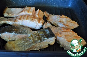 Смазать рыбу растительным маслом и обжарить с обеих сторон по паре минут.