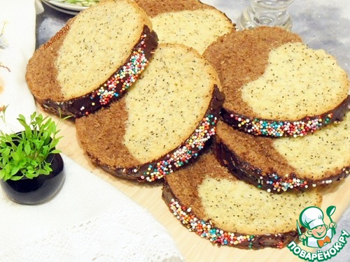 Разделить массу на две части, в одну вмешать мак, в другую какао.