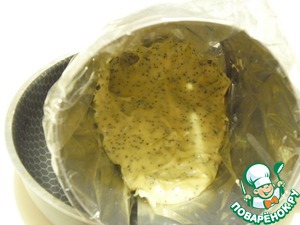 Подготовить форму - ветчинницу. Диск для дна установить между выпуклыми ограничителями. Таким образом дно не продавится тестом. -