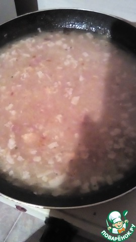 Добавляем грудинку к луку и обжариваем 3-5 минут.