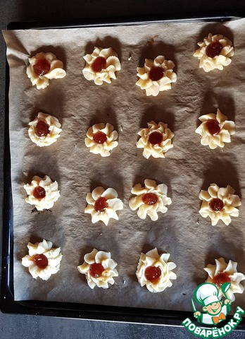 [+4]А тут Ваш рецепт. Испекла половину порции, на пробу, хоть и кулинарного мешка нет, не сдержалась, попыталась обойтись кулинарным шприцем, но не то. В смысле, форма не та, а вкус и абрикосовое повидло, как в рецепте.
