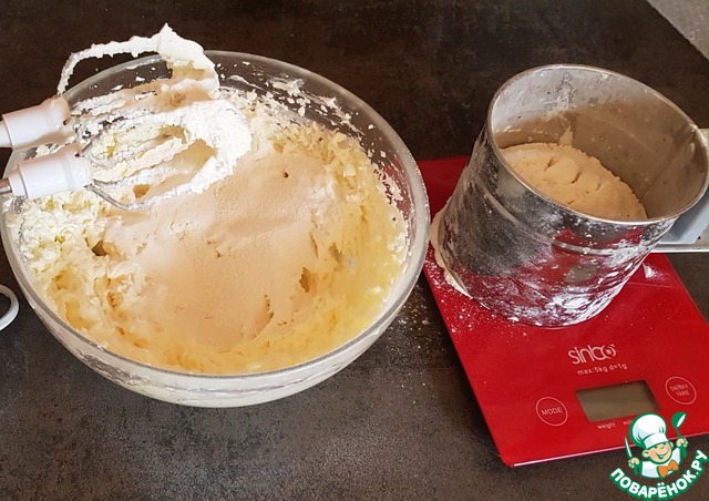Постепенно добавляйте муку. Смешивайте или лопаткой, или на низкой скорости миксером.