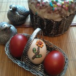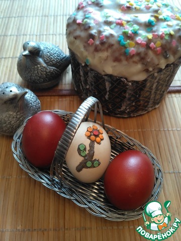 [+5]У меня не прокрасилось яйцо - экспериментировала с растительными красителями, воспользовалась Вашим рецептом и попробовала себя в роли горе-художника))