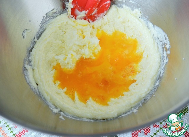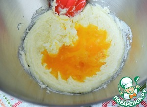 Яйца с солью взбить вилкой, смешать с масляной массой. -