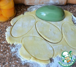 одну раскатать, толщина 4-5 мм., припылив мукой рабочее место.