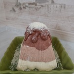 • Форму установить на тарелку узкой стороной вниз. Выложить ее влажной марлей. Заполнить пасочницу творожной массой с белым шоколадом, затем с молочным. В заключение выложить массу с темным шоколадом.