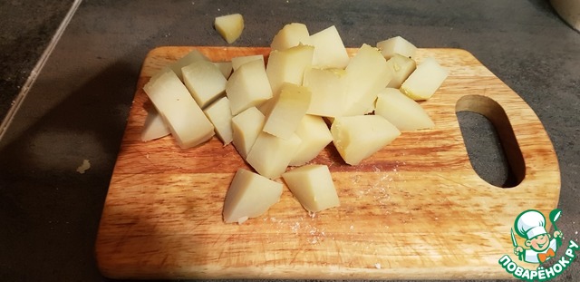 Почистите картофель, нарежьте и отварите до полуготовности.
