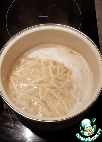 К картофелю добавьте трофи. Посолите. Варите согласно указанию на упаковке.