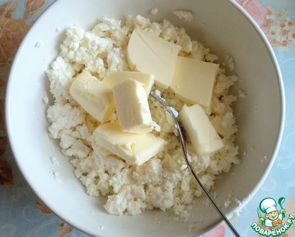 Приготовим начинку. Творог (очень желательно использовать "сухой" творог, а не пастообразный, чтобы крем не получился жидким) размять вилкой.